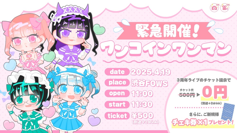 youmenosay presents.「緊急開催!ワンコインワンマン!?」の開催が決定しました!